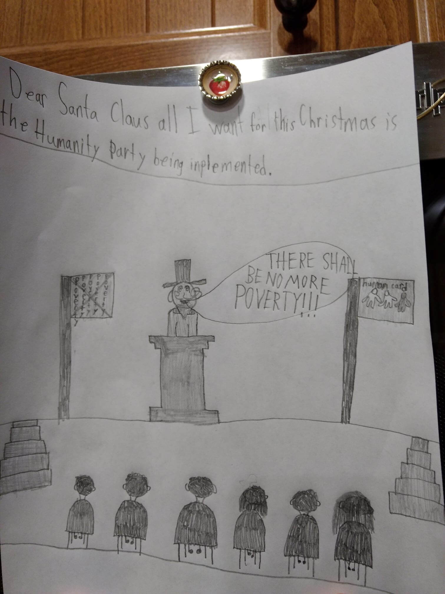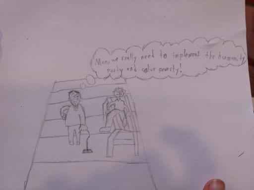 He learned about the MWAW and the Humanity Party since he was 4 or 5. It made sense to him to have the basic necessities provided for to all in this world. He used to draw pictures about the Humanity Party being implemented and the people happy about it.